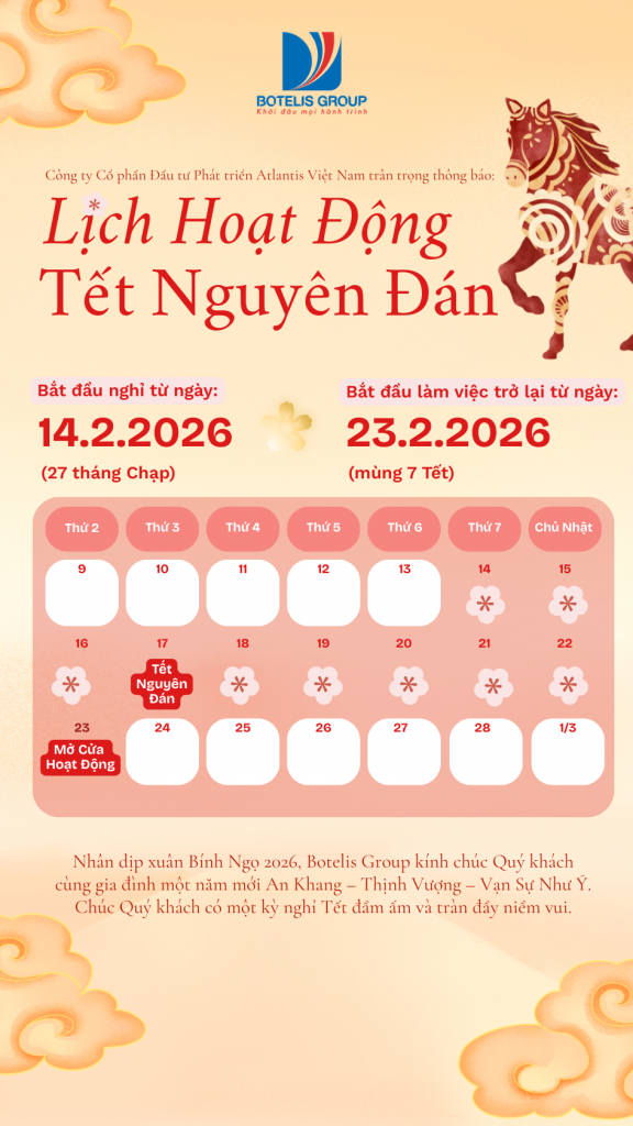 Công ty Cổ phần Đầu tư và Phát triển Atlantis Việt Nam thông báo lịch nghỉ Tết Nguyên Đán 2026